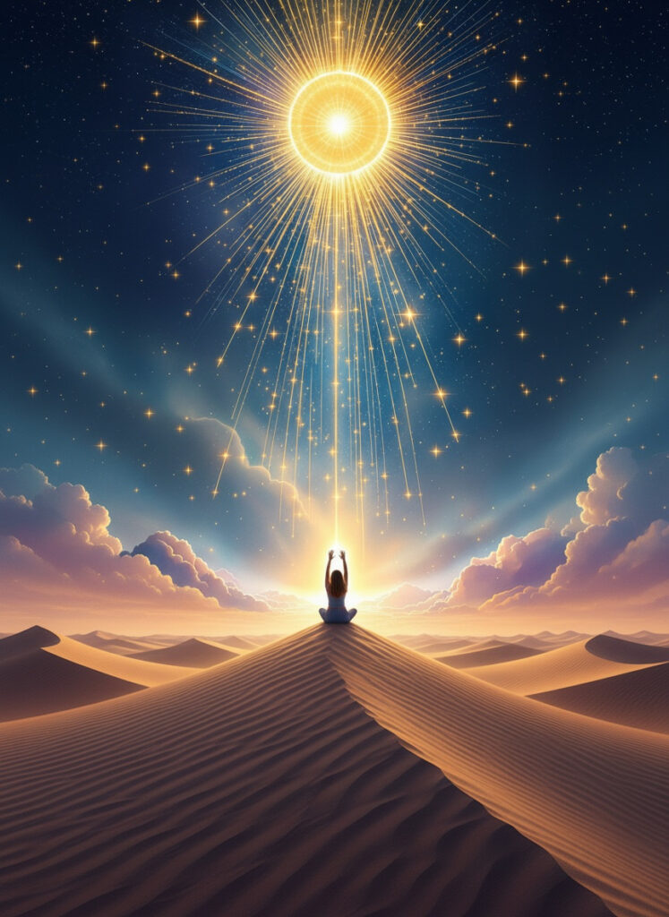 Un sol radiante aparece en el horizonte interior. Su luz no enceguece: acaricia, ilumina y revela. Esa voz que resuena en tu corazón no viene de fuera, sino de tu propio centro expandido: tu Ser Superior. Es tu parte sabia, eterna y luminosa, que recoge todas tus experiencias y aprendizajes en todas las dimensiones y tiempos.